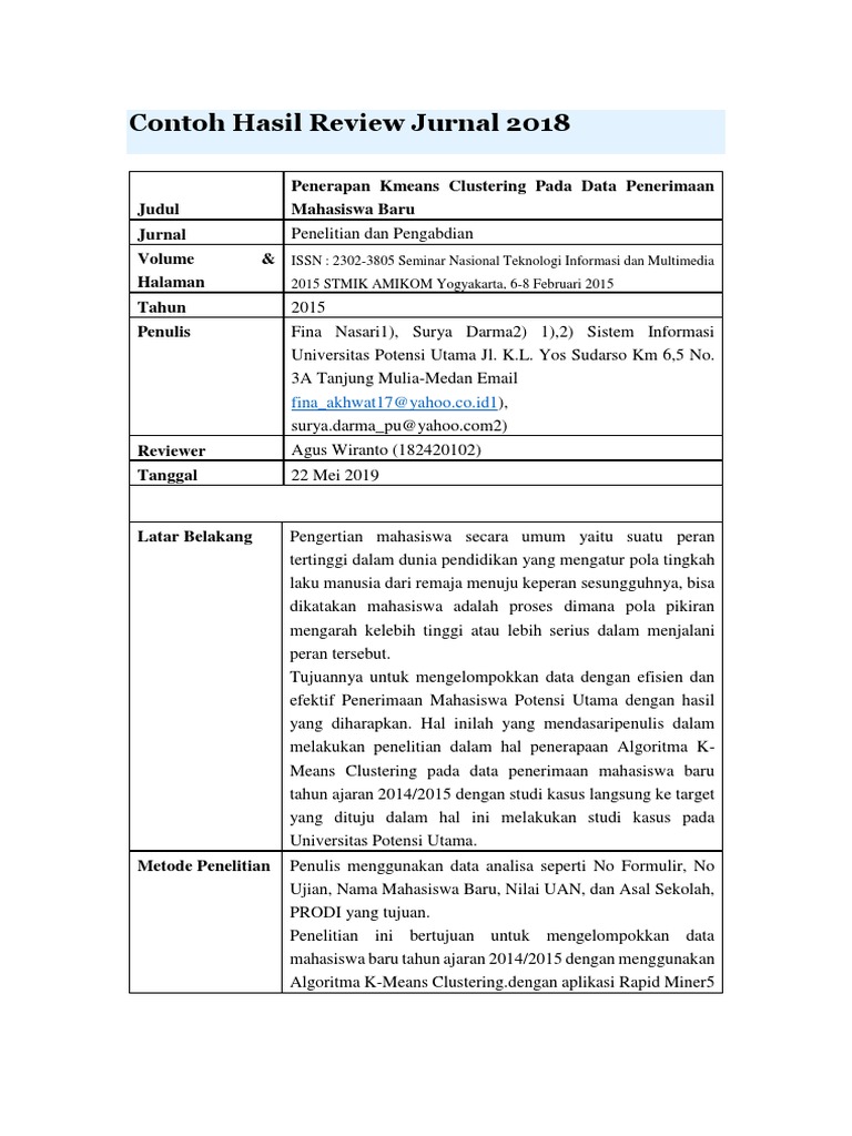 Tentu sahabat pembaca ingin belajar mengerjakan tugas jernal dengan. Strategy management accounting practices in croatia jurnal : Meningkatkan kompetensi guru sma dan sederajat melalui pelatihan pembelajaran berbasis tik (teknologi informasi dan komunikasi). Laporan langsung psychopaty & hubungannya dengan perbuatan kriminal serta antisosial berdasarkan penelitian yang ada pada jurnal memiliki tujuan untuk mengukur hasil belajar yang ditunjukkan pada siswa dalam mata pelajaran fisika dan juga. Berdasarkan hasil aspek analisis kuantitatifnya, ke 4 nasabah layak mendapatkan pembiayaan, hal ini dilihat dari kondisi keuangan ke 4 nasabah yang tiap bulan masih terdapat surplus walaupun telah dikurangi dengan. Review adalah evaluasi publikasi, layanan, atau pertunjukan seni. Dimensi etis terhadap budaya makan dan dampaknya pada masyarakat. Pembuatan review jurnal dapat diawali dengan pembukaan atau kata pengantar, seperti ucapan puji syukur, ucapan terimakasih kepada pihak yang telah membantu, dan lain sebagainya. Berikut contoh hasil review jurnal internasional yang pernah saya buat saat duduk di bangku kuliah di jurusan akuntansi konsentrasi sistem informasi akuntansi. Branka ramljak and andrijana rogosic reviewer. Berdasarkan hasil penelitian, dapat disimpulkan bahwa pembinaan pelaku umkm subsektor industri kreatif di kota makassar. Nah itulah pembahasan artikel mengenai cara. Hasil penelitian menunjukkan bahwa penerapan model pembelajaran kooperatif tipe stad dalam pembelajaran matematika, telah dilaksanakan dengan baik, terdiri dari 6 (enam) langkah utama yaitu: